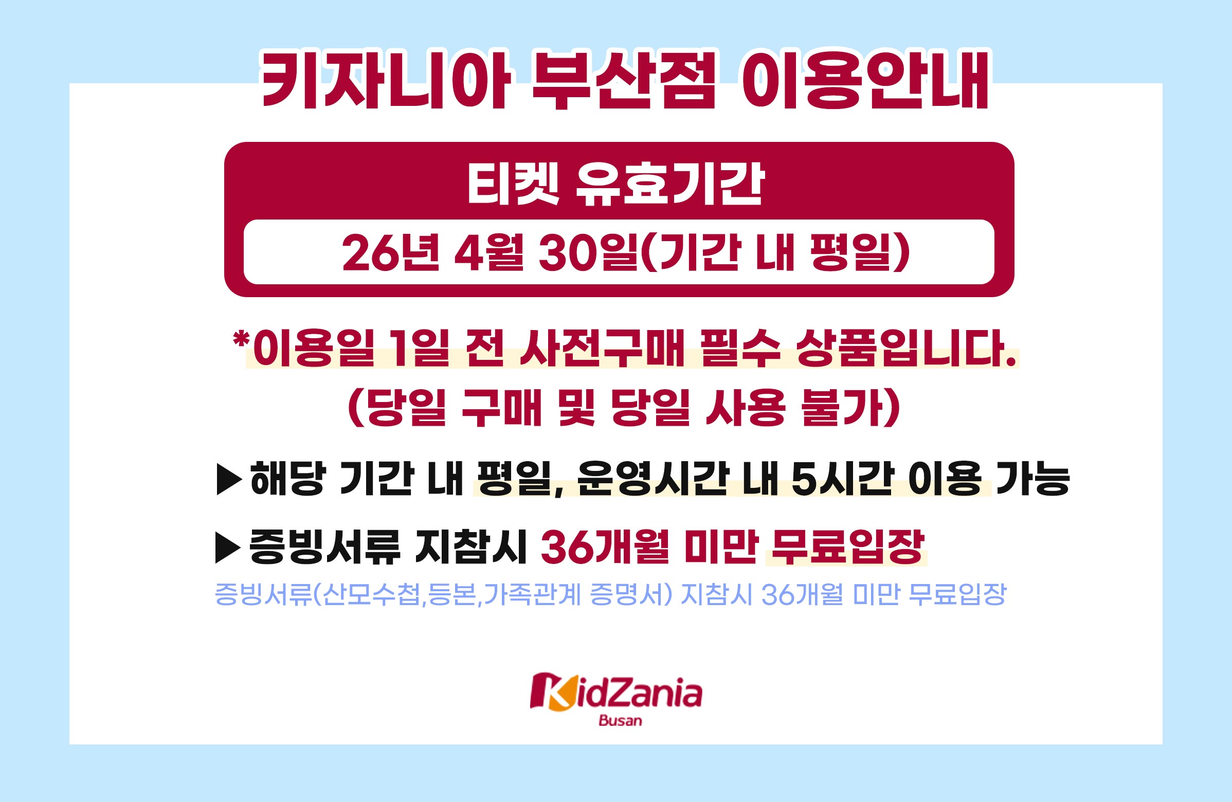 티켓(입장) 유효기간 : 26년 4월 30일 (이용일 1일 전 사전 구매 후 이용 필수)