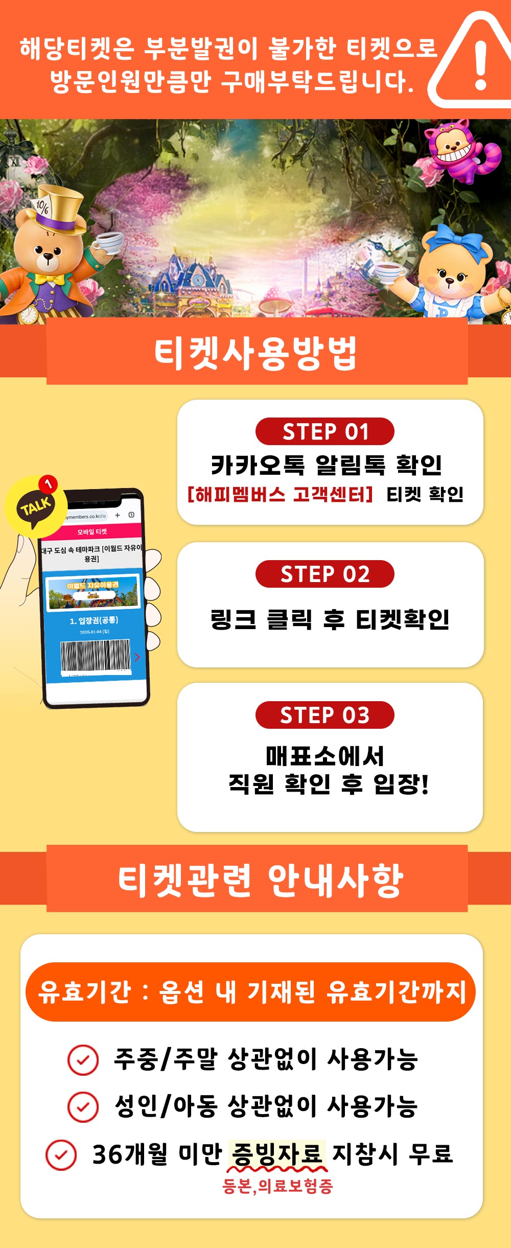 ※환불 불가 상품이며 유효기간 만료 후 티켓은 폐기 처리 되므로 복구 및 사용이 절대 불가합니다.