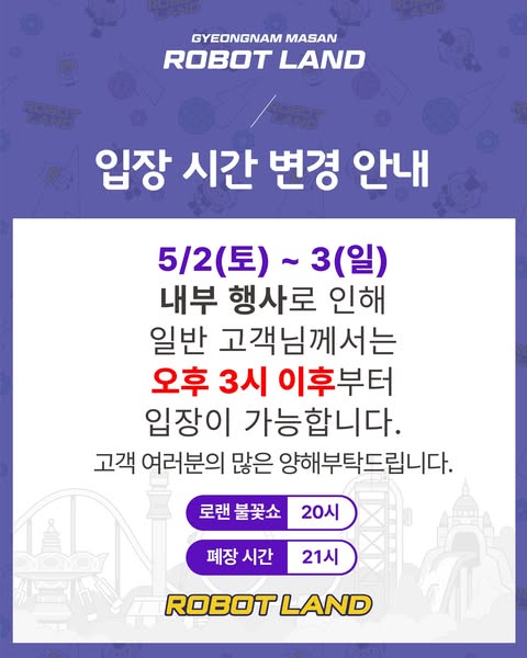로봇랜드 입장시간 변경 안내